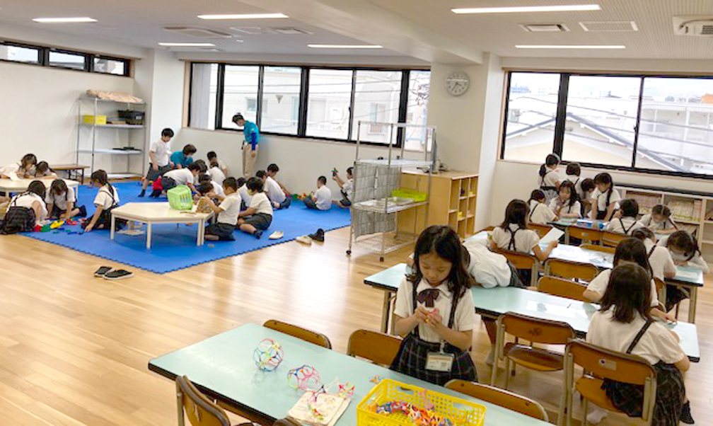 小中一貫校の渋谷本町学園に隣接する3階建ての別棟(2023年9月完成)で、放課後クラブが開設されています。毎日1年生から6年生まで、180名~200名の子どもたちが利用する大規模施設です。1階多目的室は地域にも開放されているので、地域の方とも交流があり、地域の方にとっても身近な施設です。別棟となっているため学校内よりは自由度が高く、3フロア全て使って、子どもたちはその日のメニューからやりたい事を選び、のびのびと過ごしています。