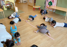音のリズムや音の高低・強弱に合わせて、子どもたちが自由に体を動かすリトミックは、楽しみながら感性豊かな自己表現力、想像力を育むことができる教育プログラムです。さらに、音や動きに反応しながら全身をのびのびと動かす活動は、身体のバランス感覚や集中力も養うことにもつながります。リトミックは、心と体の健やかな発達を促すプログラムです。
