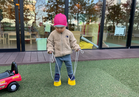 言葉を活用して自分の意思を伝えようとします。お話しすることが大好きで、保育園ではお家であったことを話したり、お家では保育園であったことを、楽しそうに話をします。「〇〇はいや」「〇〇しよう」など、自分気持ちを人に言葉で伝えようとする様子がみられます。